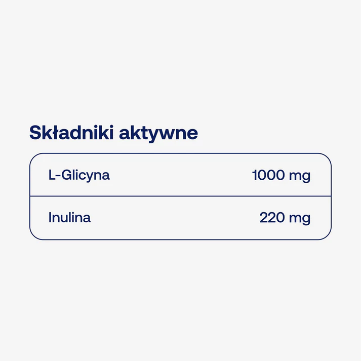 Składniki: L-glicyna, inulina (korzeń cykorii), pullulan (otoczka kapsułki).