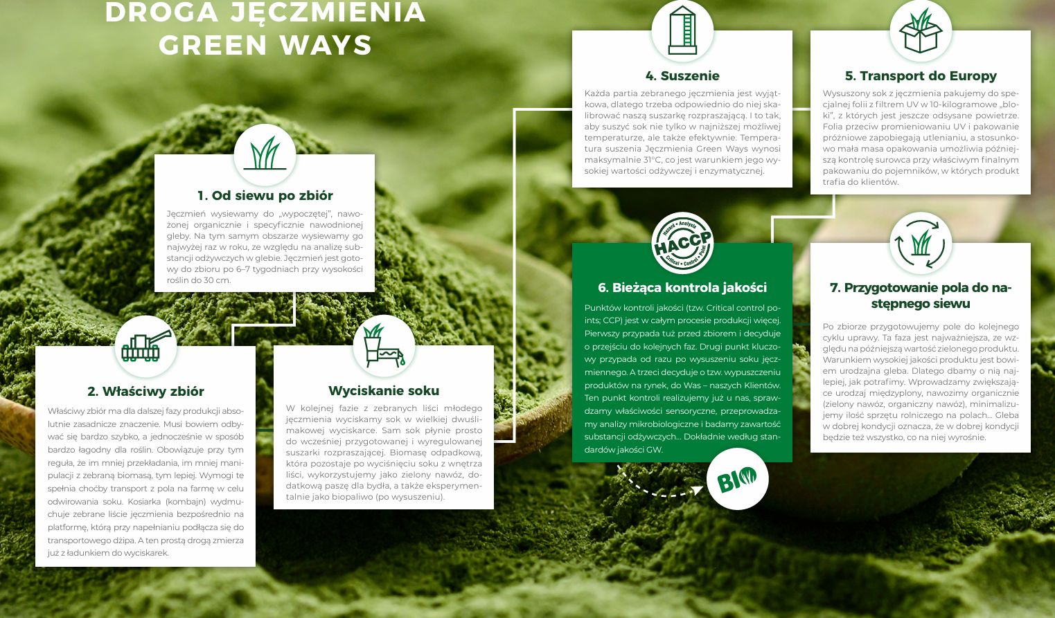 Staranny dobór lokalizacji, ściśle kontrolowana uprawa ekologiczna i wyjątkowo delikatna obróbka sprawiają, że Jęczmień Green Ways jest świetny