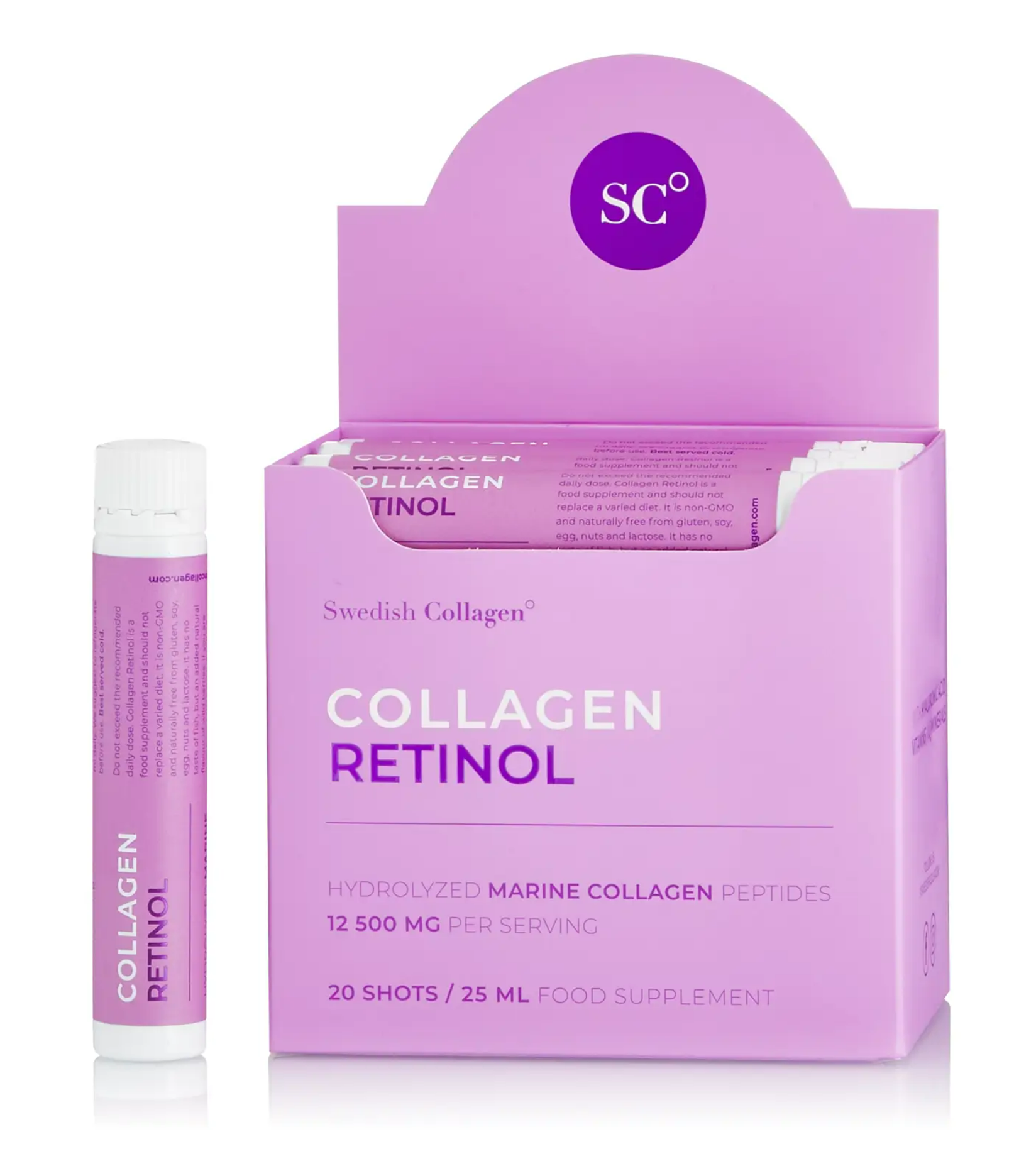 Swedish Nutra Shoty kolagenowe z retinolem zawierające kolagen rybi typu I i III